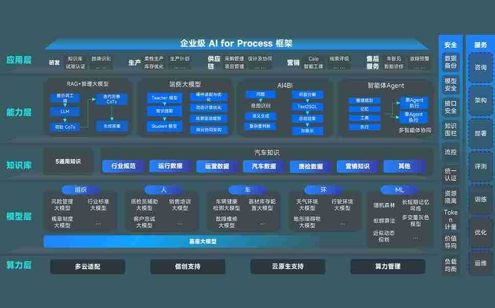 端到端的一站式AI工作空间深度融合了从企业战略规划到日常经营的全流程业务板块,,,定向解决车企内部领域多、、、、部门多、、链条长、、、、场景碎片化等难题,,,支持车企快速构建以AI为核心的生产力写作体系,,,,实现任务执行与AI能力的无缝集成与交互